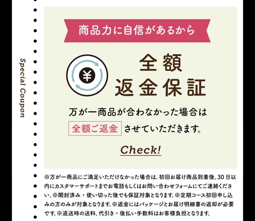 商品が合わなかった場合は全額返金保証制度がついてるんですって!太っ腹ですね。