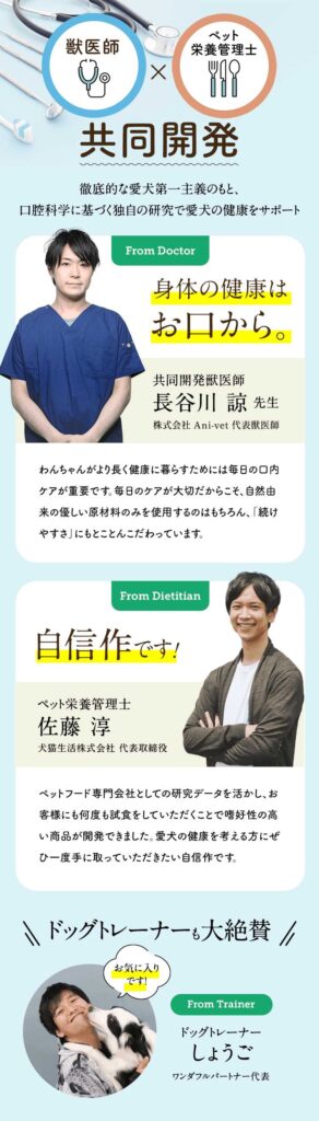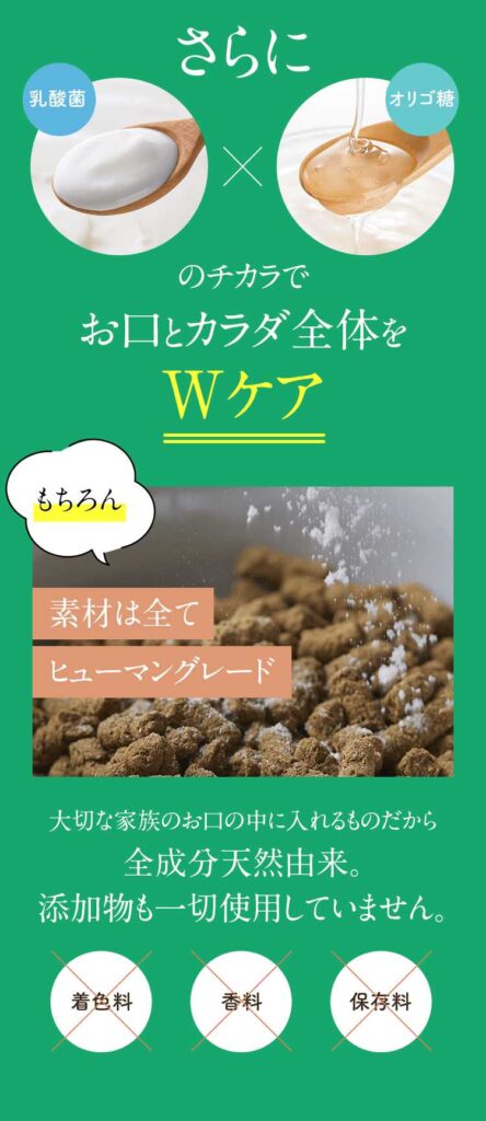 獣医師とペット栄養管理士の共同開発された口腔科学に基づく独自に研究されたサプリです。